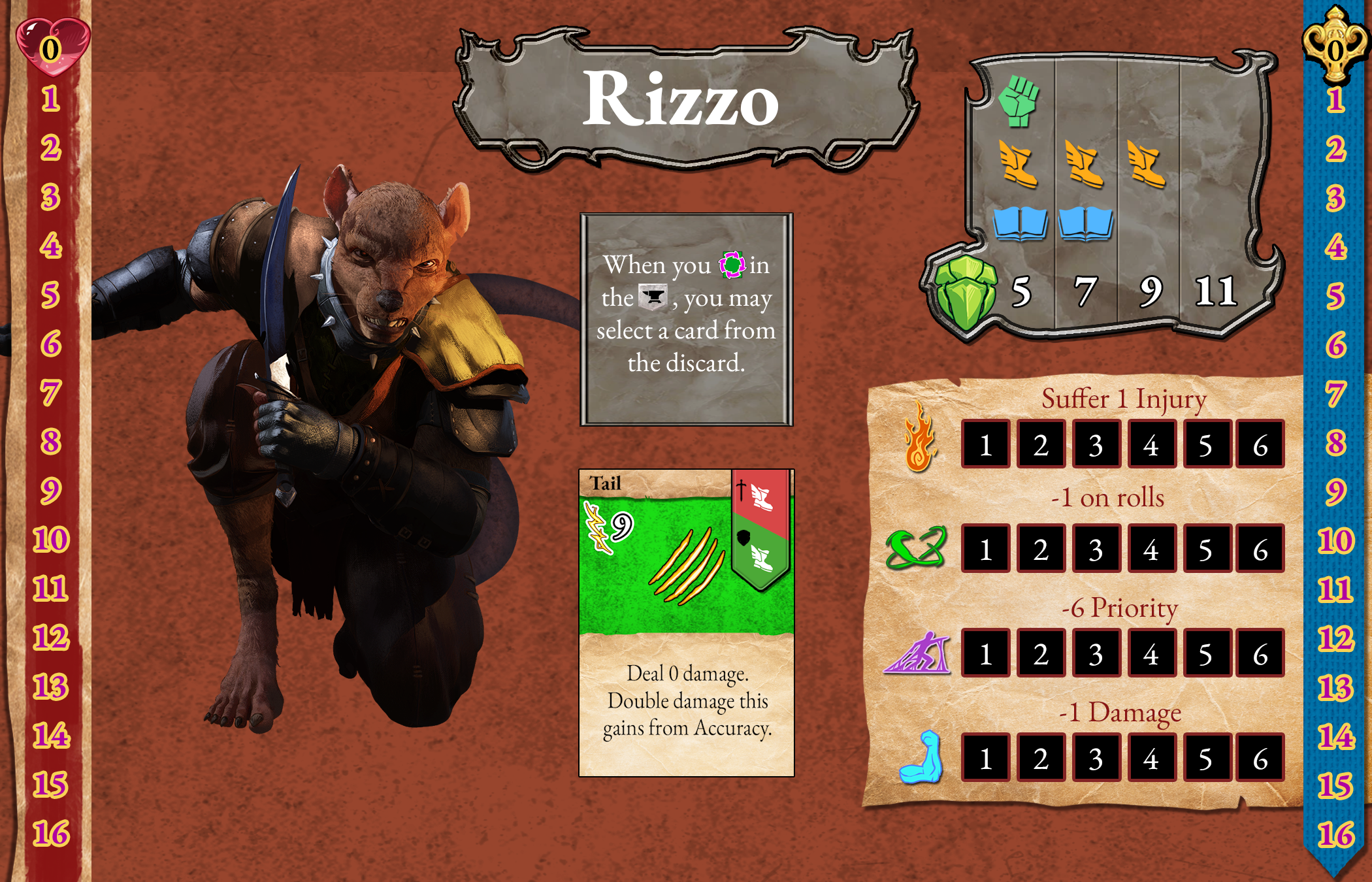 . The highest roll gains the Priority token, comparing second highest and lower dice if higher values match, rerolling if needed on a tie. During the fight, the participant with the Priority token acts first in turn order.