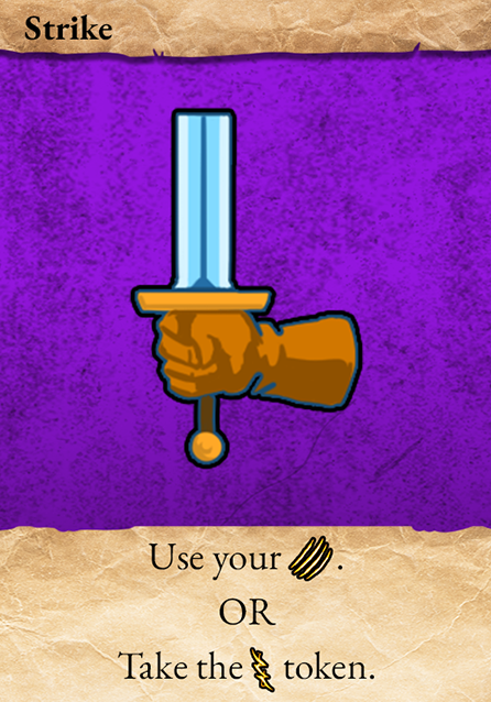 Fights are completed by each participant using actions over the course of numerous rounds. To win the fight, participants must deal damage by attacking to defeat their foe. Attacks are each represented by an ability of the participant or cards that have been obtained from the game board. There are 3 types of attacks; base attacks